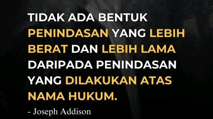 Pemikir Inggris Joseph Addison pernah mengingatkan bahwa tidak ada bentuk penindasan yang lebih berat dan lebih lama bertahan dibandingkan penindasan yang dilakukan atas nama hukum.
